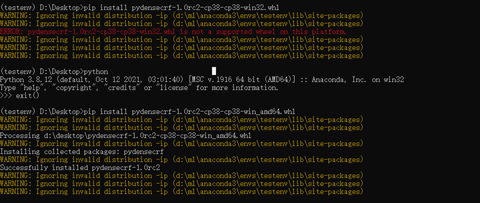 11.使用conda创建新环境时出现以下报错:  1. `conda clean -i` 2. 删除`.condarc`文件,关闭代理 3. 重新打开Anaconda Prompt窗口,运行命令创建新环境。(此时删除了所有镜像,使用官方源进行安装,未尝试镜像源安装) > 参考资料: > 1. [conda install packages error: Collecting package metadata (current_repodata.json): failed](https://stackoverflow.com/questions/61134985/conda-install-packages-error-collecting-package-metadata-current-repodata-json) > 2. [Managing channels](https://conda.io/projects/conda/en/latest/user-guide/tasks/manage-channels.html) 12.安装`pydensecrf`pip包时出现如下报错:  提示`Microsoft Visual C++ 14.0 or greater is required`。 解决方案: 1. 按照参考资料3安装对应Visual Studio工具 安装后使用`pip install pydensecrf`安装出现新的报错:  2. 参照参考资料4将`pydensecrf-1.0rc2-cp38-cp38-win32.whl`下载到本地安装后出现如下报错:  更换为`amd64.whl`版本后解决。 > 参考资料: > 1. [Error "Microsoft Visual C++ 14.0 is required (Unable to find vcvarsall.bat)"](https://stackoverflow.com/questions/29846087/error-microsoft-visual-c-14-0-is-required-unable-to-find-vcvarsall-bat) > 2. [Pip error: Microsoft Visual C++ 14.0 is required](https://stackoverflow.com/questions/44951456/pip-error-microsoft-visual-c-14-0-is-required) > 3. [Error "Microsoft Visual C++ 14.0 is required (Unable to find vcvarsall.bat)"](https://stackoverflow.com/questions/29846087/error-microsoft-visual-c-14-0-is-required-unable-to-find-vcvarsall-bat) > 4. [Pydensecrf 安装报错_MenahemLi的博客-CSDN博客](https://blog.csdn.net/qq_36978986/article/details/108130879) > 5. [Archived: Python Extension Packages for Windows - Christoph Gohlke](https://www.lfd.uci.edu/~gohlke/pythonlibs/#pydensecrf) 13.运行`npm install package-name`时,卡在`sill idealTree buildDeps`没有反应。 解决方案: - 配置淘宝镜像:`npm config set registry https://registry.npm.taobao.org ` - 检验镜像配置:`npm config get registry ` - 继续运行:`npm install`。 - 如果问题仍然存在,运行:`npm set strict-ssl false` > 参考资料: > 1. [1.运行npm install 时,卡在sill idealTree buildDeps没有反应_豆豆豆豆芽的博客-CSDN博客](https://blog.csdn.net/weixin_46182244/article/details/121302702) > 2. [[BUG] "sill idealTree buildDeps" takes a lot of time a project with workspaces · Issue #3257 · npm/cli · GitHub](https://github.com/npm/cli/issues/3257) 14.出现`RuntimeError: latex was not able to process the following string`:  解决方案:安装MiKTeX并添加到环境变量。(安装正版LaTeX更好) > 参考资料: > 1. [Getting MiKTeX](https://miktex.org/download) 15.Clash for Windows端口为0且无法更改,导致代理不可用:  原因:系统更新后,由于使用`Hyper-V`的功能,虚拟机需要映射一部分端口,并且在系统更新后对动态映射的端口进行了更改,导致占用了本来的`Clash`使用的端口。 解决方案:更改系统进行动态映射的端口范围 - cmd中`netsh int ipv4 show dynamicport tcp`,可以发现系统更新后动态端口范围变为从1024开始,导致原先的1080端口被占用 - `netsh int ipv4 set dynamicport tcp start=49152 num=16383`,将为tcp协议分配的端口范围进行更改 - `netsh int ipv4 set dynamicport udp start=49152 num=16383`,将为udp协议分配的端口范围进行更改 - `netsh interface ipv4 show excludedportrange protocol=tcp`,结果如下:  - 说明此时端口设置已经更新,重启电脑后可以在Clash中对端口进行设置。 >就参考资料: >1. [解决 Clash for windows 端口为 0 导致无法使用_51CTO博客_clash for windows连不上](https://blog.51cto.com/frytea/4146902) >2. [Clash For Windows代理端口为0问题 - 寒梦](https://siegelion.cn/2022/01/31/Clash%20For%20Windows%E4%BB%A3%E7%90%86%E7%AB%AF%E5%8F%A3%E4%B8%BA0%E9%97%AE%E9%A2%98/) 16.v2rayN出现`v2rayN tcp:127.0.0.1: rejected proxy/socks: unknow Socks version`刷屏:  问题:系统的代理设置协议为`http`和`https`协议,而v2rayN只支持`socks5`协议,导致出错。 解决方案:将系统代理设置协议更改为`socks5`,或者将代理软件改为SSR或者Clash,此二者同时支持`http`和`socks5`协议。 > 参考资料: > 1. [如何解决“rejected v2ray.com/core/proxy/socks: unknown Socks version: ”的问题 - Xuing的个人博客](https://xuing.cn/security/v2ray_unknown_socks.html)参考资料: